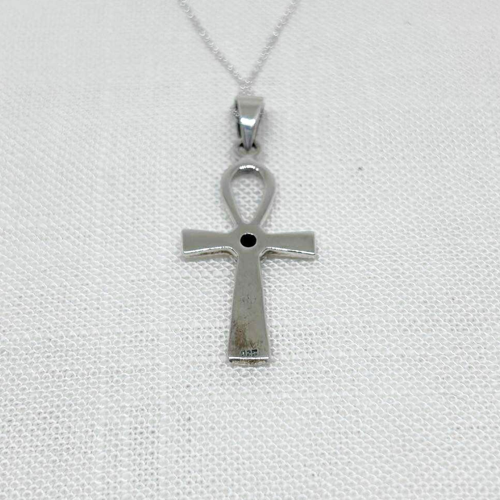This highly polished .925 Silver Ankh pendant is presented with a faceted black Agate gemstone, said to be a stone for grounding, protection, and strength, measures 4cm including the bale x 1.8cm wide.